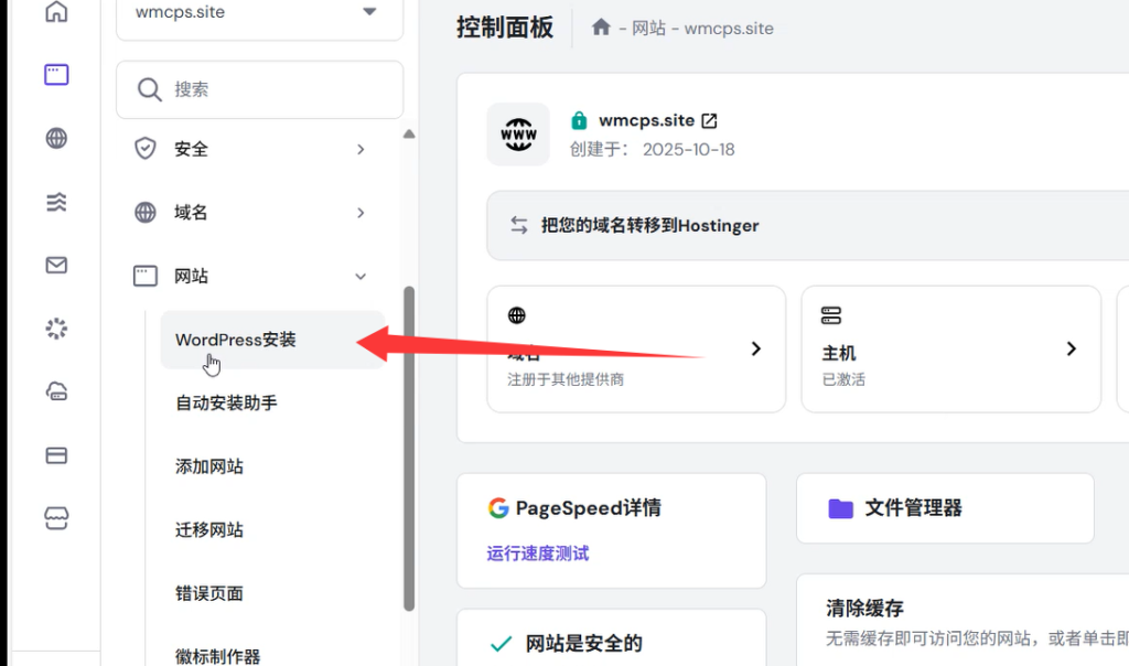 1、打开 wmcps.site 网站的Hostinger控制面板