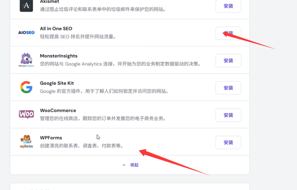 根据恩佐多年开发经验,建议前期先安装All in SEO、WPforms就可以,后期只需要安装Google Site Kie 插件即可。