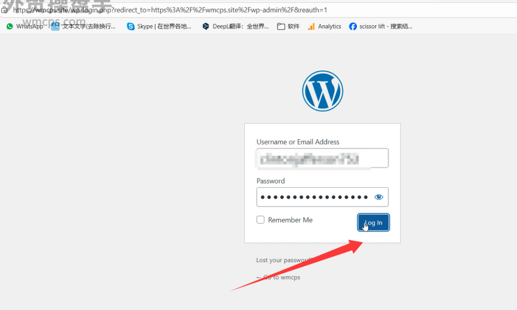 打开 网站后台,默认后台地址是:域名/wp-admin/,所以我们测试域名的后台地址为:https://wmcps.site/wp-admin/。