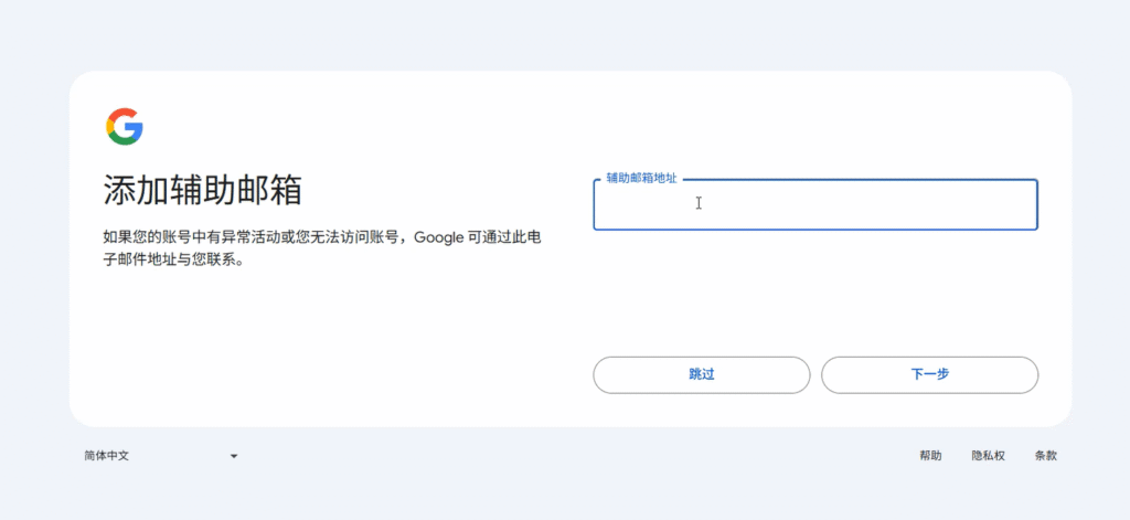 五、辅助邮箱建议大家填写一个常用的邮箱,后期忘记密码,登录都有可能用得到。然后就会看到右上角谷歌变成一个橙红色的圆圈,这就说明谷歌账号注册成功了,再进入到靠左的Gmail,就可以成功进入谷歌邮箱了。