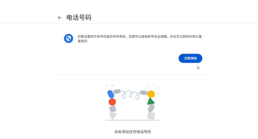 六、注册成功后,再把自己的手机号添加到谷歌账号中,这样后期如果出现申诉、登录验证、忘记密码等问题,都可以通过手机号来重置密码或者其他安全操作。