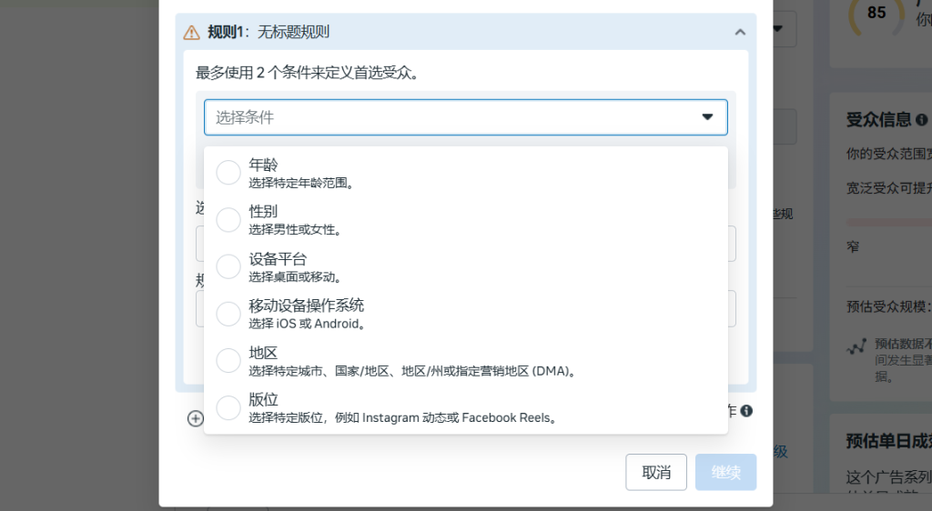 价值规则:可以这么理解,对特定的受众群体提高出价。