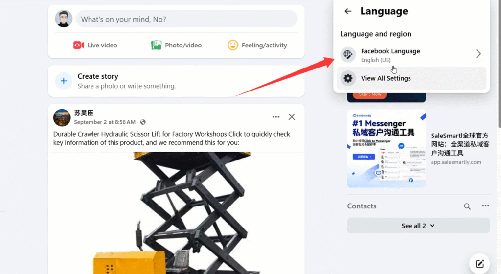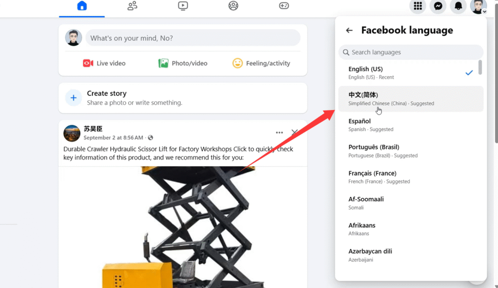 由于修改默认语言功能比较实用,是每一个Facebook运营都需要知道的,所以我单独拿出来,给大家说一下。