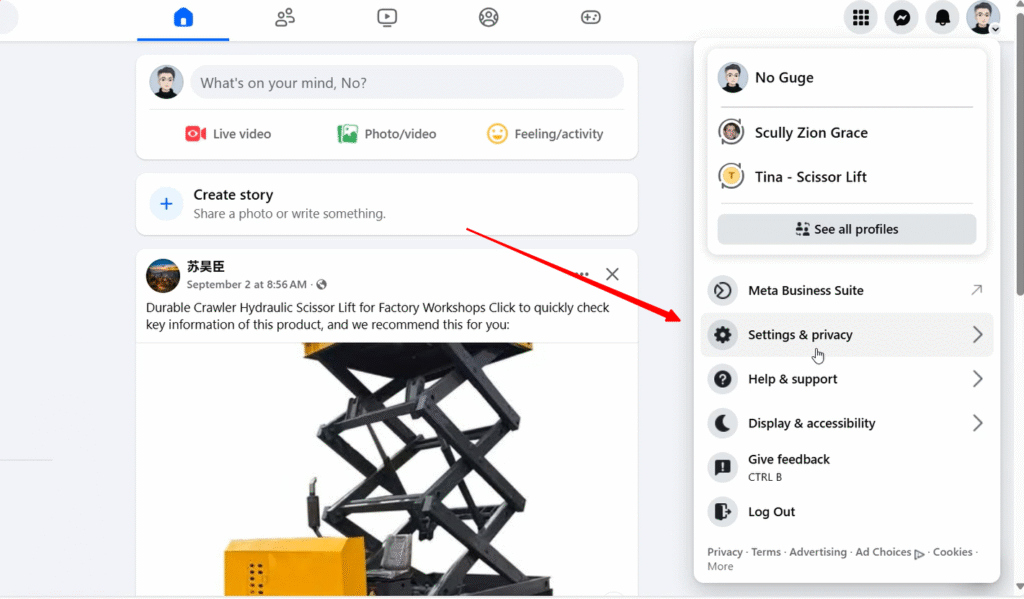 一、点击右上角的头像功能,点击 Settings & privacy 功能