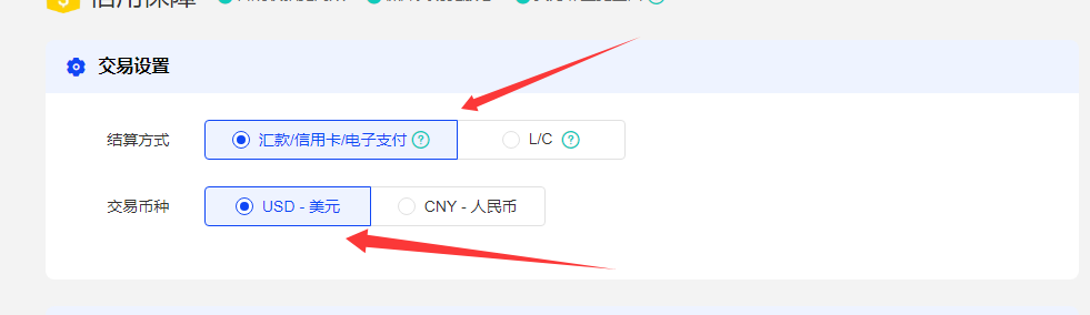 2、进入到信用保障订单界面,选择交易设置,如下图: